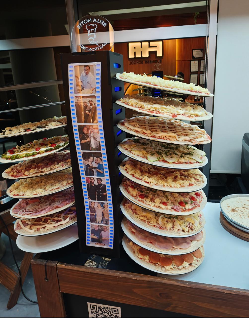 O carro-chefe da Bella Notte são as pizzas finas, crocantes e bem recheadas, ideais para aniversários, eventos corporativos e confraternizações. A estrutura inclui balcão personalizado, torre de pizzas exclusiva e o charmoso kart de pizza, que virou atração nas festas. O serviço atende de 20 a 300 convidados, com opção intimista chamada “Chef em casa” para grupos de 10 a 15 pessoas.