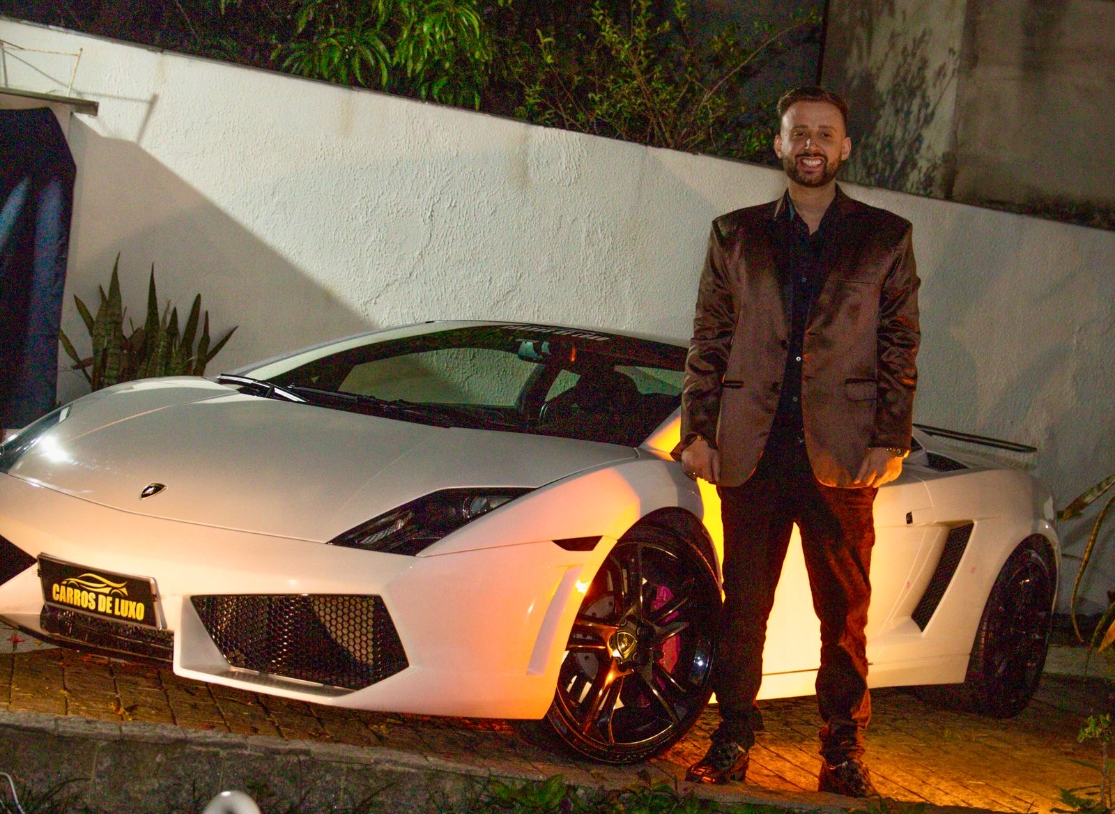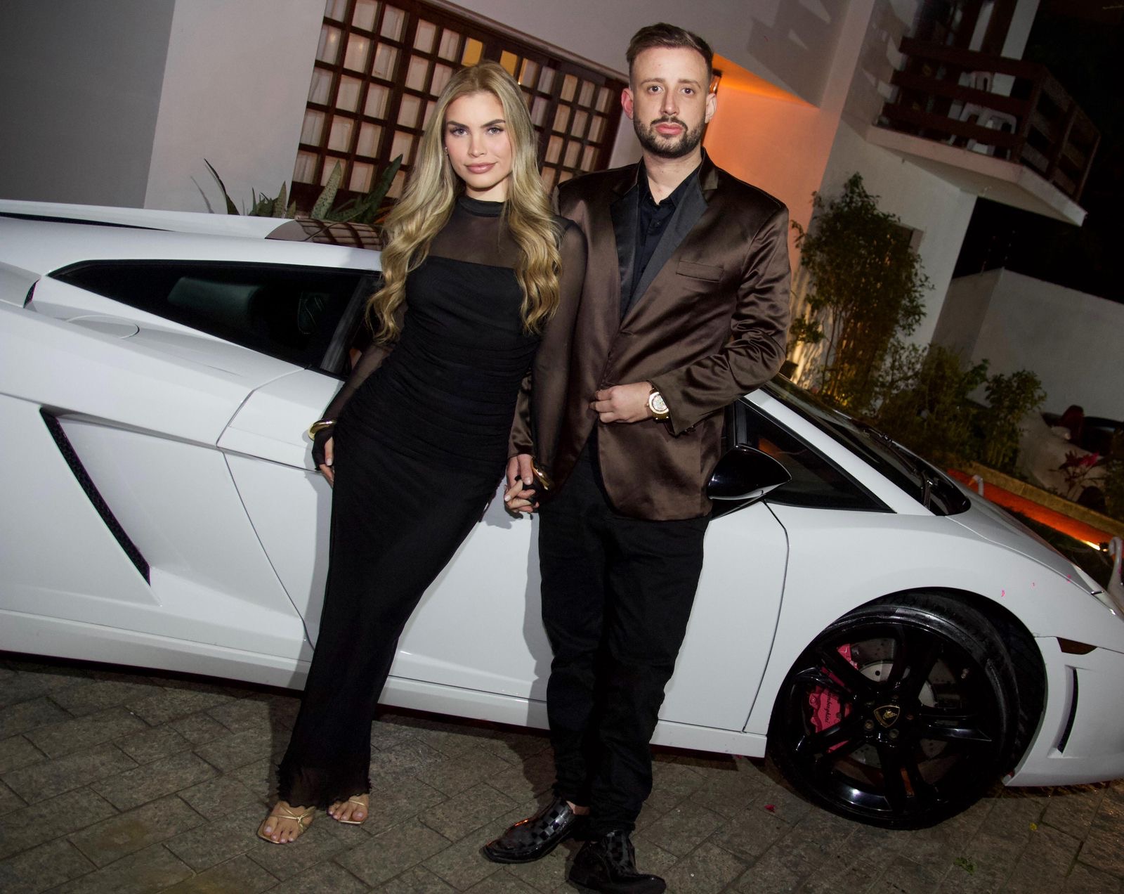 Os convidados foram recebidos por uma Lamborghini avaliada em mais de R$ 1 milhão e um superesportivo conversível da BMW
